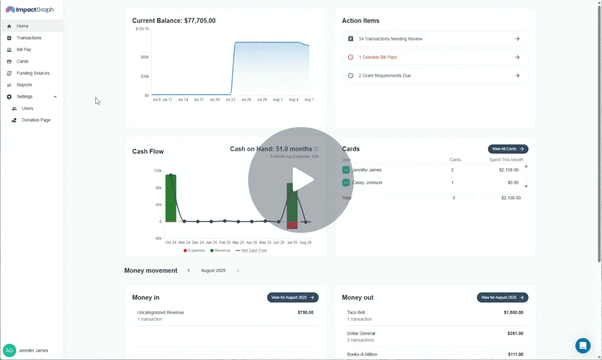 Money movement: View top funders and biggest expenses, with easy access to tagged funding sources and transactions.